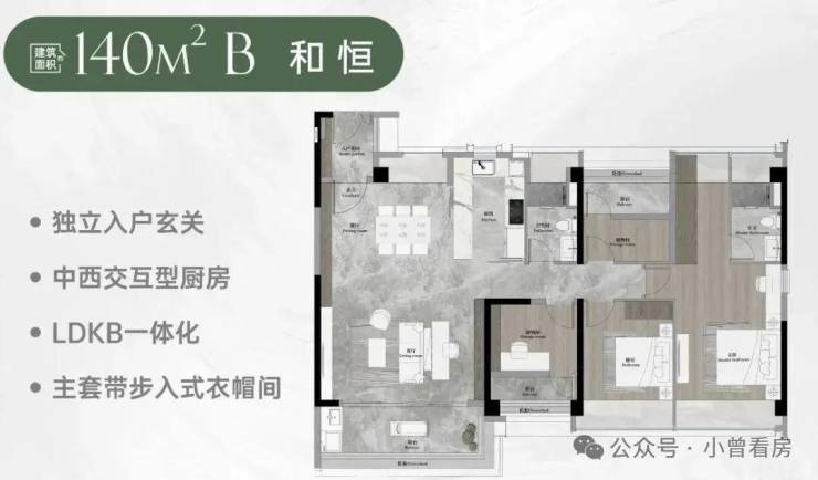 140平方和恒:4室2厅2卫,超大衣帽间+入户玄关
