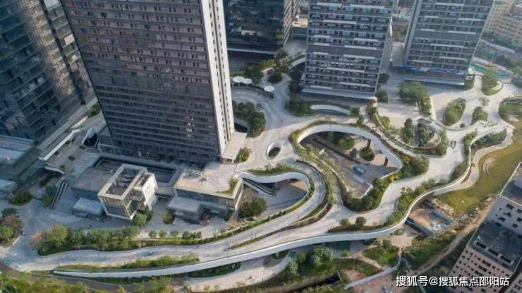 在地块中央,宛如丝带般优美地串联起各个建筑单体的云平台,除聚集、沟通、交流、交汇、展示等功能外,还是使用者体验休闲放松、绿色生活的场所。