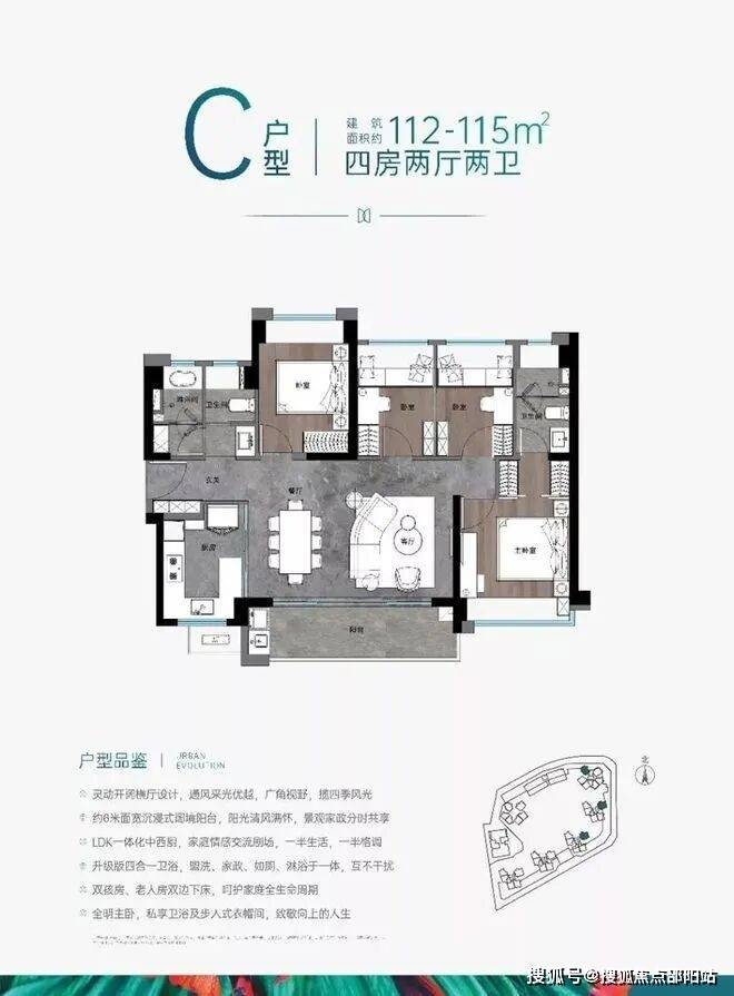 112㎡4房2卫,单价4.42万起,总价约495万-531万