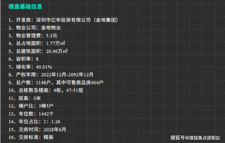 金地启曜,由金地集团打造,总占地面积约1.77万㎡,总建筑面积约20.96万㎡,计容建筑面积约15.23万㎡,容积率8,绿化率40.01%,共由4栋47-51层高住宅组成,其中2栋1单元住宅51F,2栋2单元住宅47F,2栋3单元住宅48F,2栋4单元公租房50F,3栋是1所12班制幼儿园,另外1栋是写字楼36F。