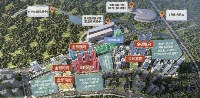 满京华金硕和府,由满京华集团开发,位于光明区光明中心区光辉大道与狮山三街交汇处,项目所在区域是光明规划最宜居,居住小区板块最大的片区,北侧靠近科学公园,东侧及南侧是深圳小学光明学校狮山校区及初中校区,距离最近的6号地铁线“光明站”约800米。