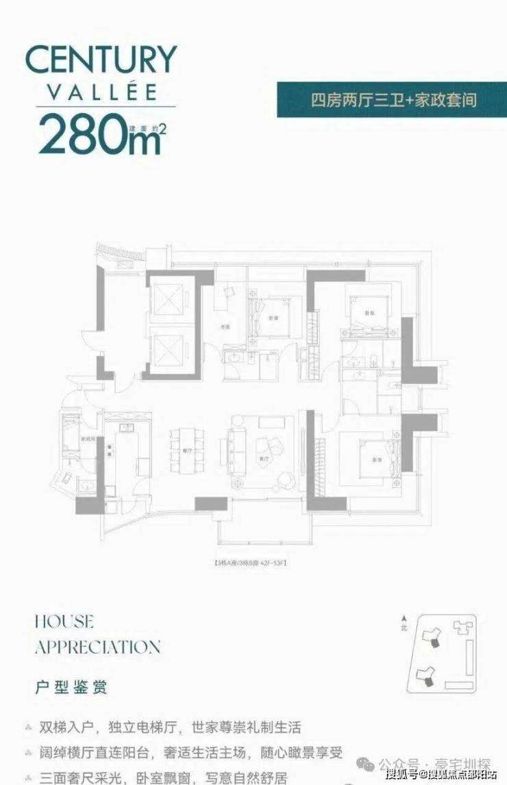 ▫️约233㎡|3+1房3卫双梯入户,横厅贯通阳台,三面采光,西北向望高尔夫景观