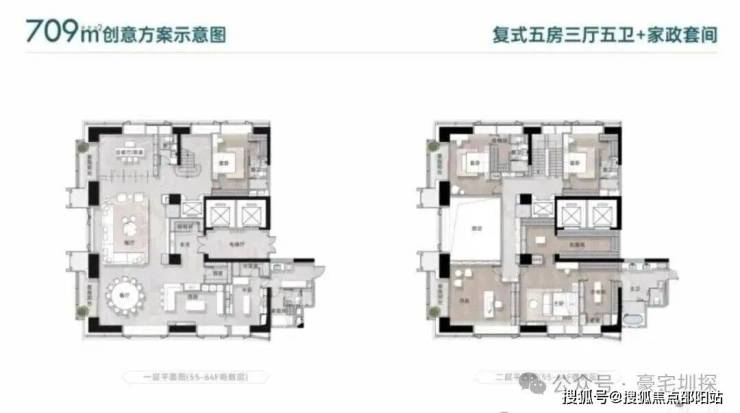 ▫️约280㎡|4+1房4卫双梯入户,横厅连接阳台,主次卧双套房,西南向高层可看深圳湾