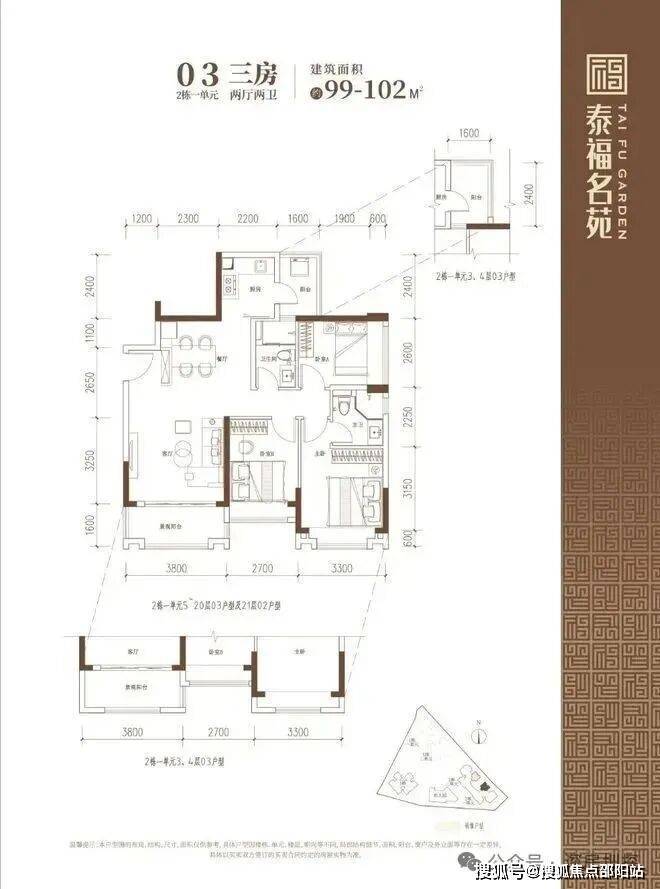 90-102㎡的3房2厅2卫户型。这几个户型都是在主人房多设计一个卫生间,私密性更强,也让家人间的生活更加方便。