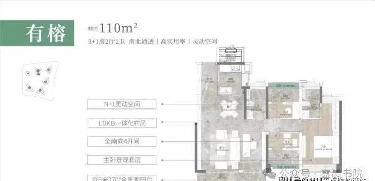 建面约110㎡,南向阳台近6米,显得很阔气,270°视野,更是难得,LDKB一体化设计,形成一个阔绰的方厅,