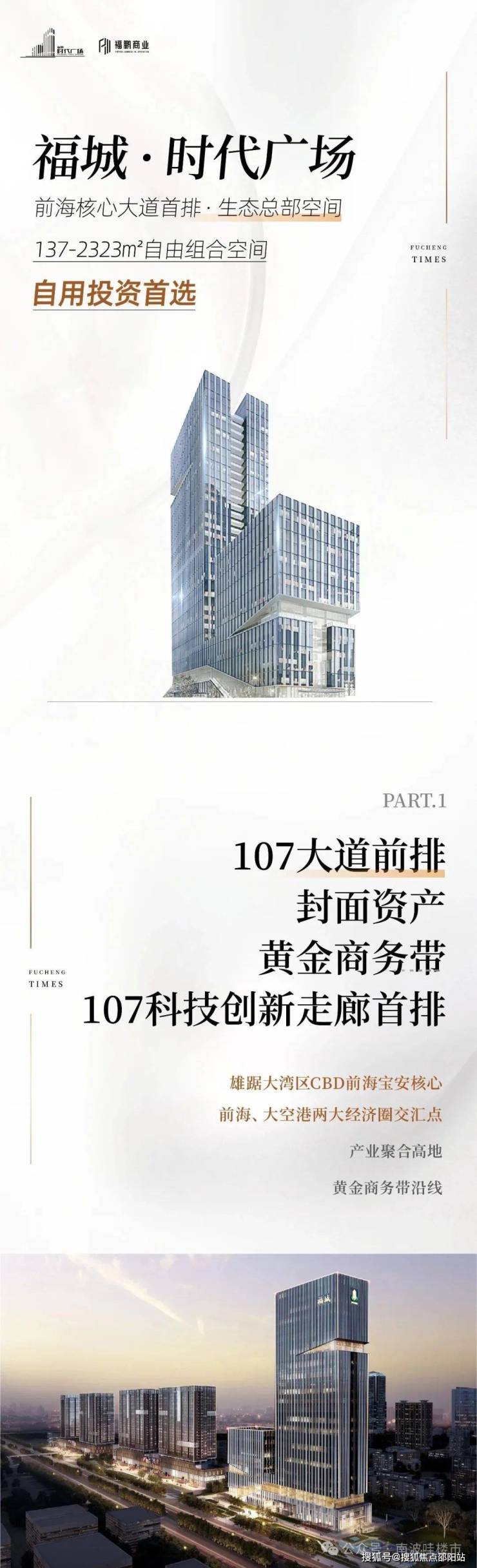 •地处南头关口,整体项目以一公里阵地线屹立为城,以180米封面天际线引领107时尚商务走廊前排,