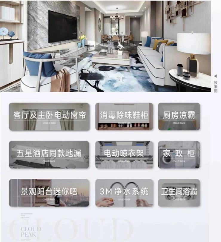 深入到居者的生活细节,定制极具人性化的9项细节配置,囊括电动窗帘、景观阳台迷你吧、消毒除味鞋柜、厨房凉霸、浴霸等,以极致的匠心精神,打造贴心、极致的居住体验。于细节处见智慧、让居住回归人性本真