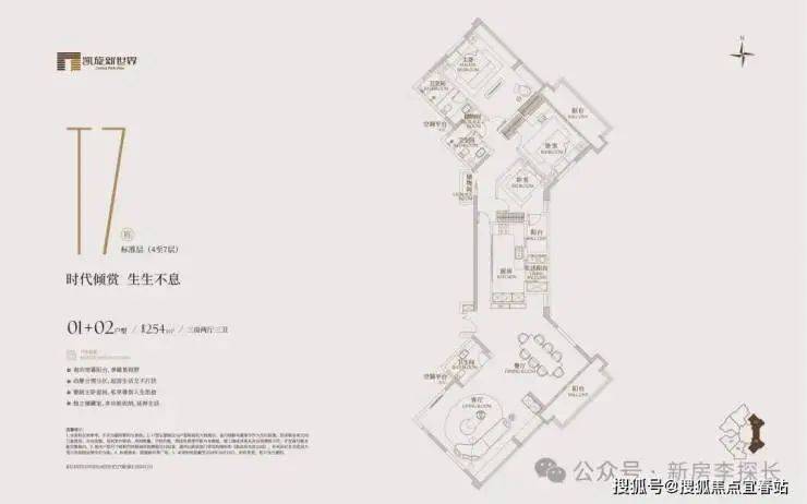 ▼ T7栋01+02户型 254㎡ 三房两厅三卫