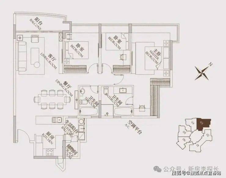 ▼ T7栋03户型 172㎡ 三房两厅两卫