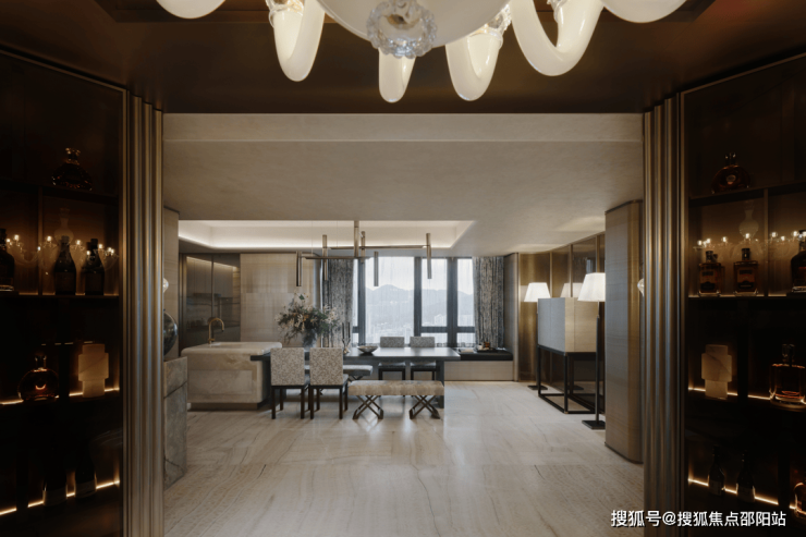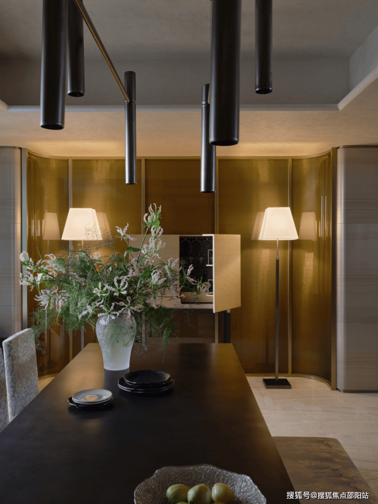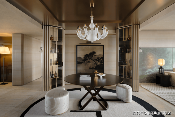 Armani Casa的设计将水墨刺绣融入到居室中,巧妙地布局,描绘着举杯谈笑、雅士风度的迎客之道。
