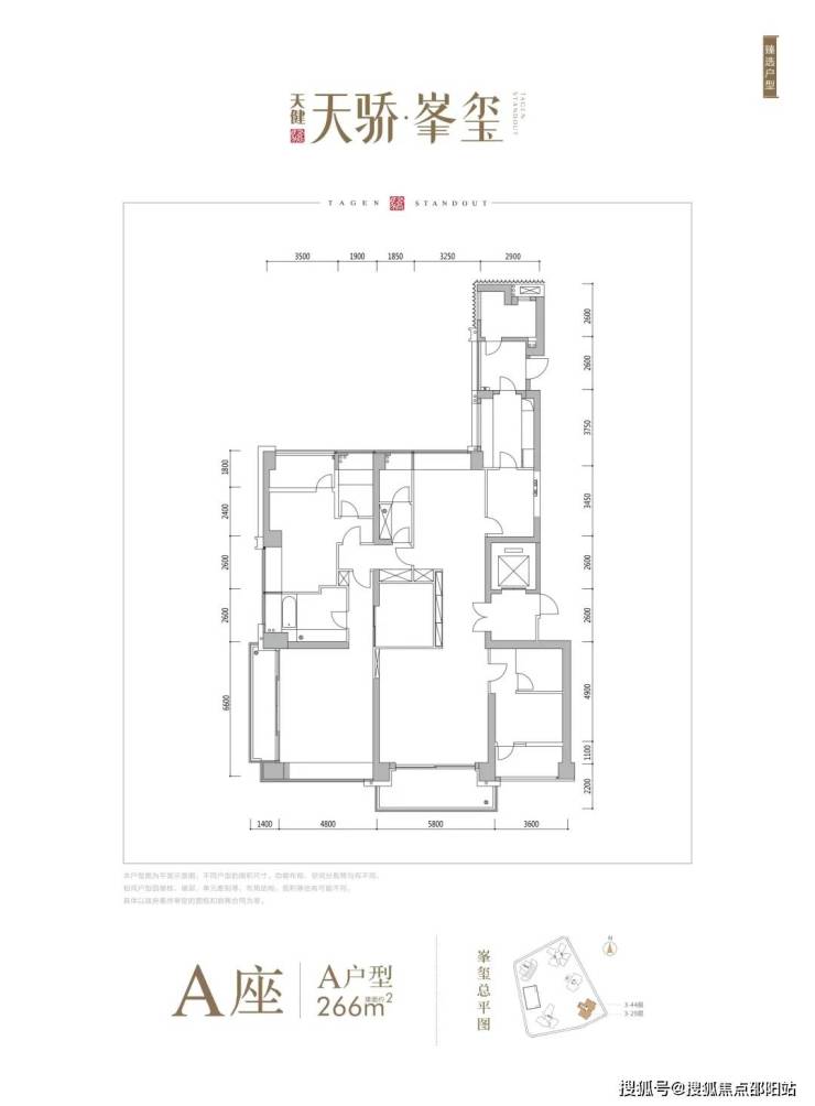 A座:A266㎡4+1房4卫 南北通 3阳台