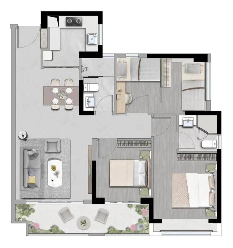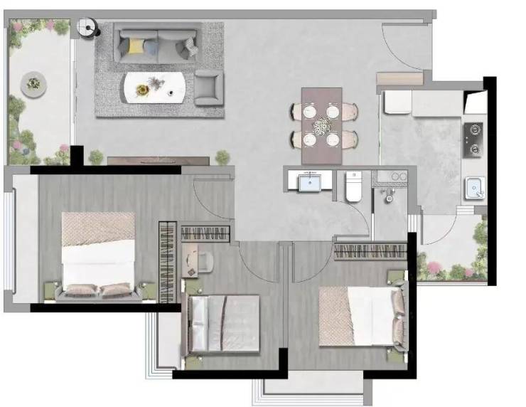 打造约72-140㎡全生命周期户型,高实用PLUS成长空间,满足小太阳之家、四世同堂等不同生阶段居住需求。