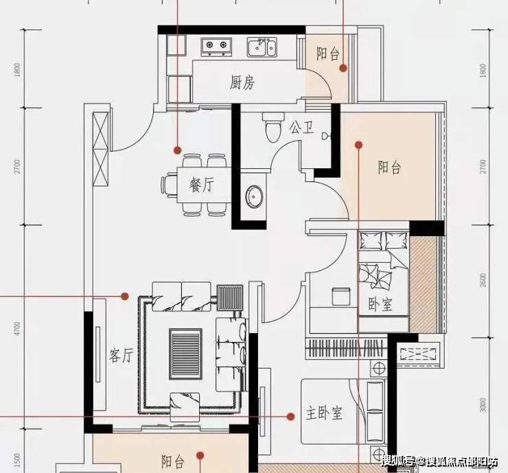 G户型:约70㎡ 2房2厅1卫 户型亮点:臻稀户型 低总价