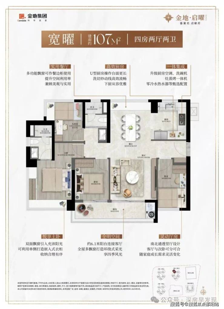 同等户型更舒适尺度:约93㎡宽幕三房约5.7米阳台直连客厅,舒适尺度媲美四房;约103-107㎡四房双跨宽景阳台,开阔尺度龙华稀缺。