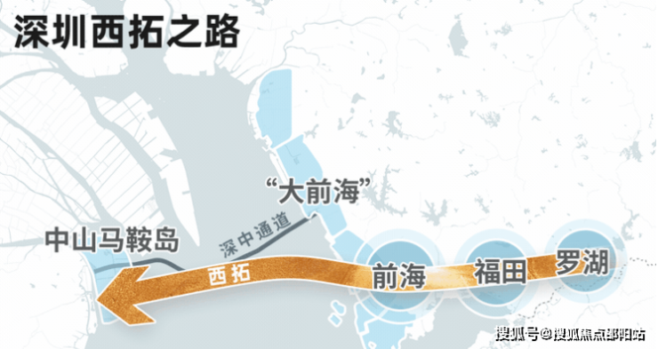 深中通道从前海过来,上岸口就是马鞍岛中部,这也是中部被称为“比深圳更近前海”的原因。