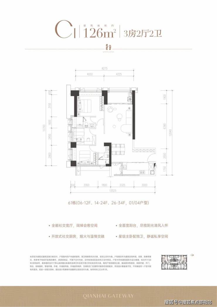 深铁前海时代·尊府Ⅲ 61栋「前海之门」,作为项目收官住宅楼栋,官方户型图正式释出,实体样板间已开放。