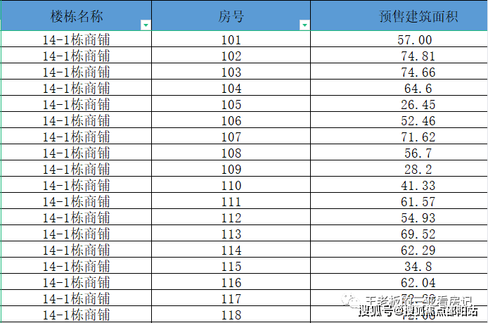 14-4#号楼11套(面积27.79㎡-73.59㎡)14-6#号楼14套(面积43.47㎡-87.58㎡)14-7#号楼4套(面积66.76㎡-67.38㎡)