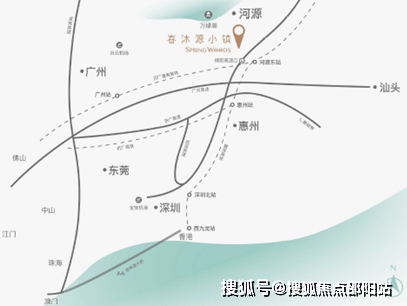 项目位于广东省河源市源城区埔前镇陂角村,距离河源市区车程约半个小时,距离广州市区约187公里,距离深圳市区约162公里,项目紧邻长深高速、广河高速与河源东站(广河高铁与赣深高铁),自驾车程时间2小时内到达,2021年12月10日赣深高铁全线通车(通车后香港西九龙至河源东站仅1小时),项目完全融入粤港澳大湾区1小时经济生活圈,区位整体通达性较高,距离时长适宜周末家庭短途出游度假。