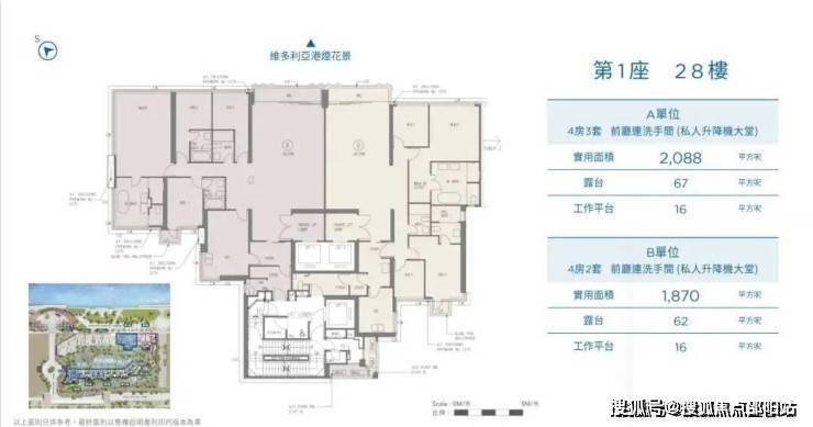 4 房:实用面积 1797 至 2088 方呎,共 116 伙。