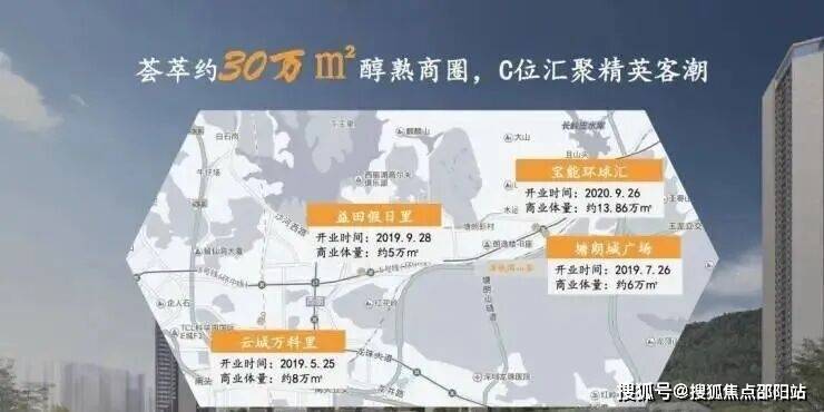 4、商圈·繁华:30万㎡TOD商业体量,约6万㎡塘朗城广场、约14万㎡的宝能环球汇、约5万㎡益田假日里购物中心