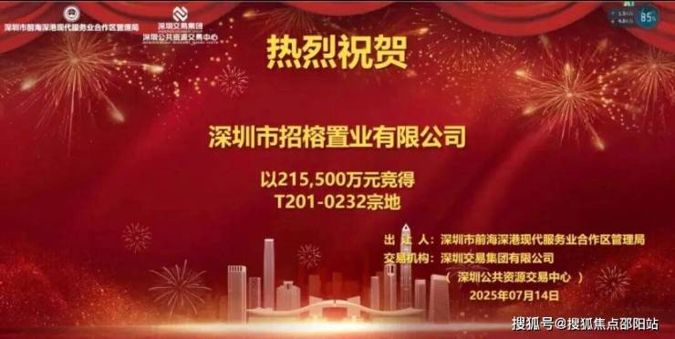 招商海宴府 前身是在2025年7月14日深圳集中土拍供地中,12家知名开发商参与竞拍,经过158轮角逐,由招商集团以21.55亿元拿下的T201-0232宗地,楼面价也是冲击了深圳历史天花板,高达8.42万/㎡,成为了深圳单价最高的地王。