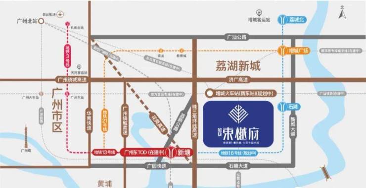 3干线:新城大道/荔新公路/广园快速,3条干线快速到达荔城/新塘/黄埔/天河;