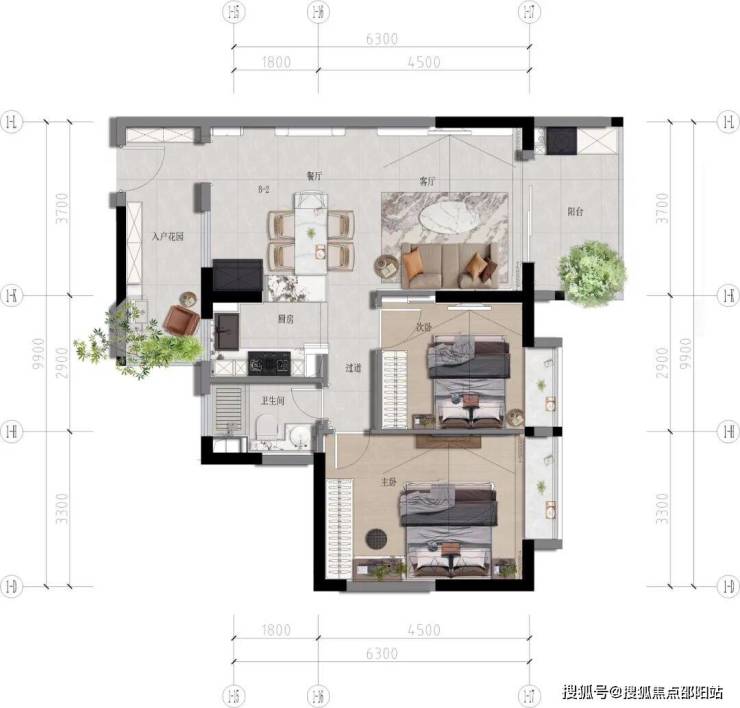◎宜居范本:独立入户花园,方正两房筑就宜居典范