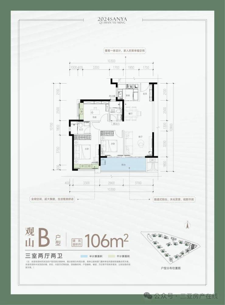 📍观山 B户型-建面约106㎡ 三室两厅两卫