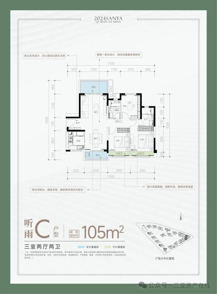 📍 听雨 C户型-建面约105㎡ 三室两厅两卫