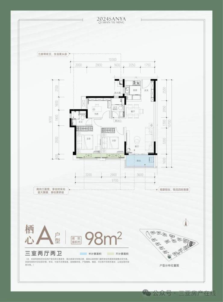 📍栖心 A户型-建面约98㎡ 三室两厅两卫
