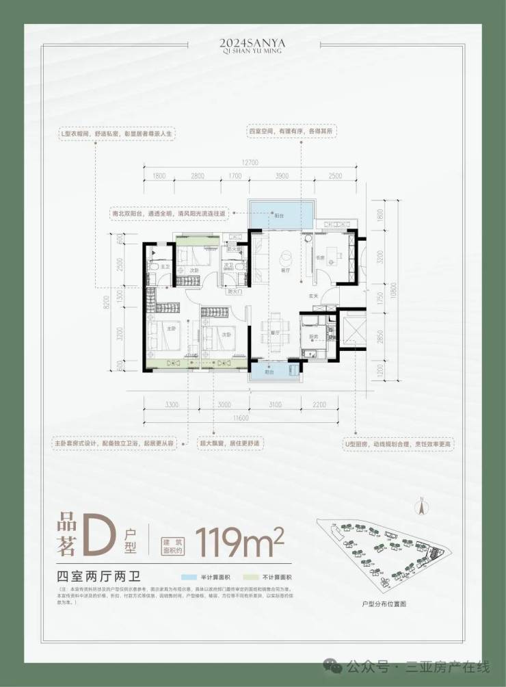 📍品茗 D户型-建面约119㎡ 四室两厅两卫