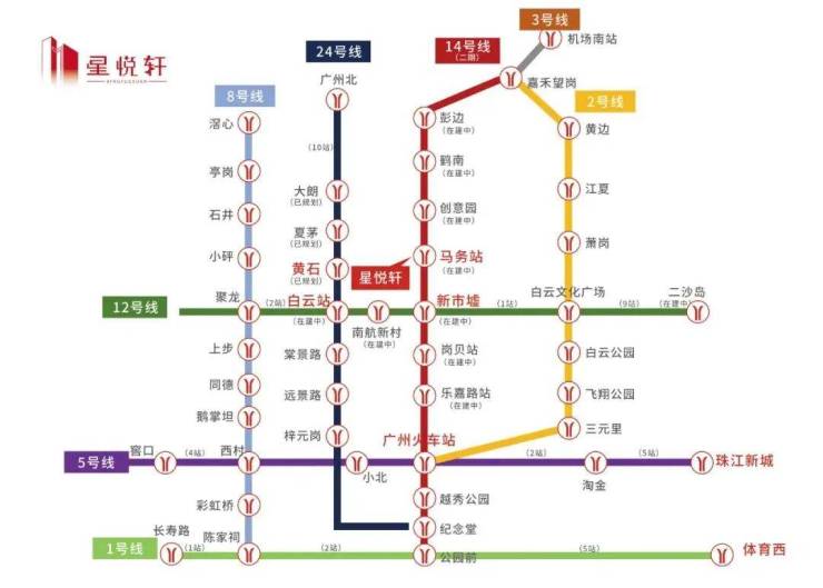 星悦轩拥揽白云新城CBD、白云TOD商圈,三地铁环绕,出门可达14号线二期马务站(在建),毗邻12号线白云站(在建)、24号线黄石站(规划中),1站白云TOD,1站新市墟站,4站广州火车站,再换乘7站即达珠江新城,轻松畅达全城。