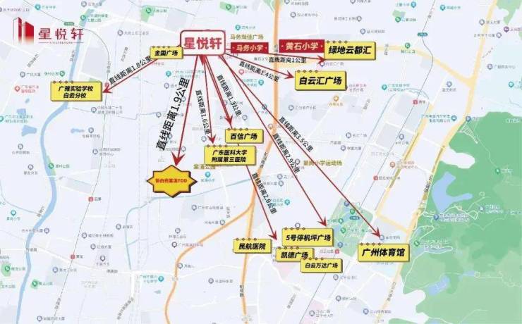 星悦轩打造15分钟生活圈,演绎24小时美好生活图鉴,地处白云新城CLD生活圈:周边医疗教育配套完善;拥有国家级城市绿地自然资源:白云山、白云湖,拥有3公里的超级生态圈;汇聚成熟的商业和生活配套:凯德广场、白云万达广场、5号停机坪广场、百信广场、白云汇广场、绿地云都汇、金国广场、马务广场等。
