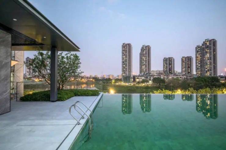 华润置地金沙瑞府规划业主社交会所,采用星级酒店的设计标准,会所内设置无边际泳池、私人宴会厅、有氧健身房等服务业主的配套,同时项目采用自然一体式园林设计语言,呈现“外部山景,前部水景,内部造景”的三重景观体验,是广州主城集繁华、轻奢和自然生活为一体的人文生活样板。