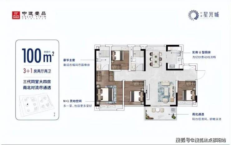 100㎡别墅级户型,大面宽短进深,南北通透,户型方正