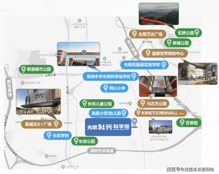 教育/居住配套:配建6万㎡精装居所,400米内两大保障房小区提供超1万套租赁房源。项目西侧毗邻尚美小学,2公里内覆盖深圳中学光明科学城学校、光明凤凰城实验学校、长圳学校、同心小学等多所优质学校