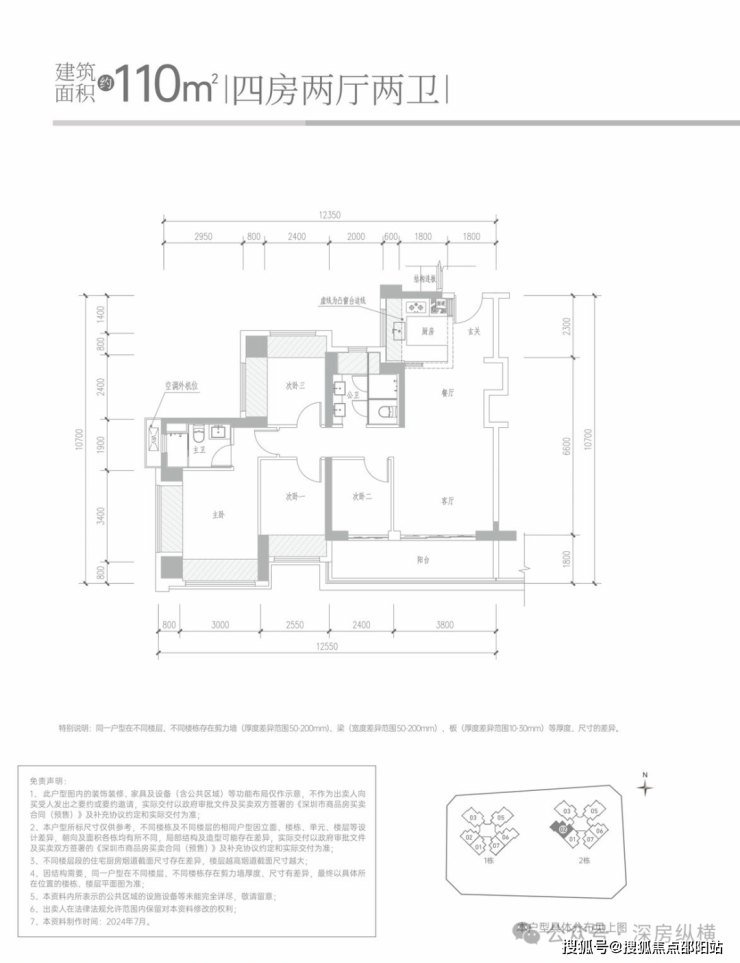【梯户比】:1栋49F 3T6户、2栋33F 2T/6户