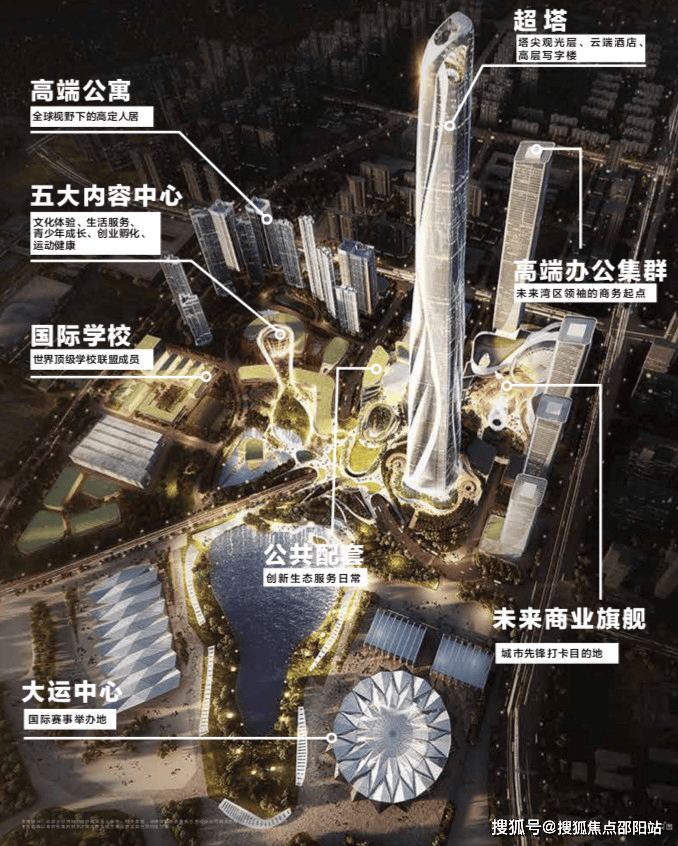 根据当时的宣传方案,深港国际中心是一个建面约136万㎡的综合体项目,规划包含63万㎡办公、31万㎡商业、30万㎡公寓、5万㎡酒店,以及剧场、图书馆、美术馆、国际学校等配套设施,总投资额500亿元。