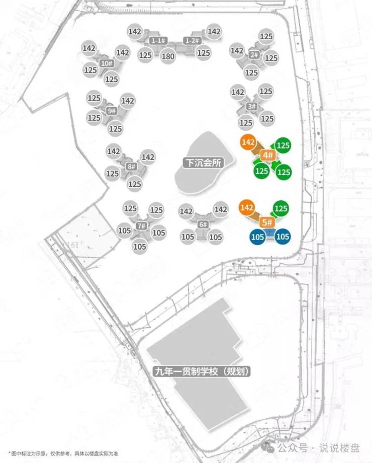根据规划,项目10栋楼采用围合式布局,打造中央园林+下沉式会所,南北主轴楼距约150米,东西约100米,小区配套有幼儿园+九年一贯制学校。
