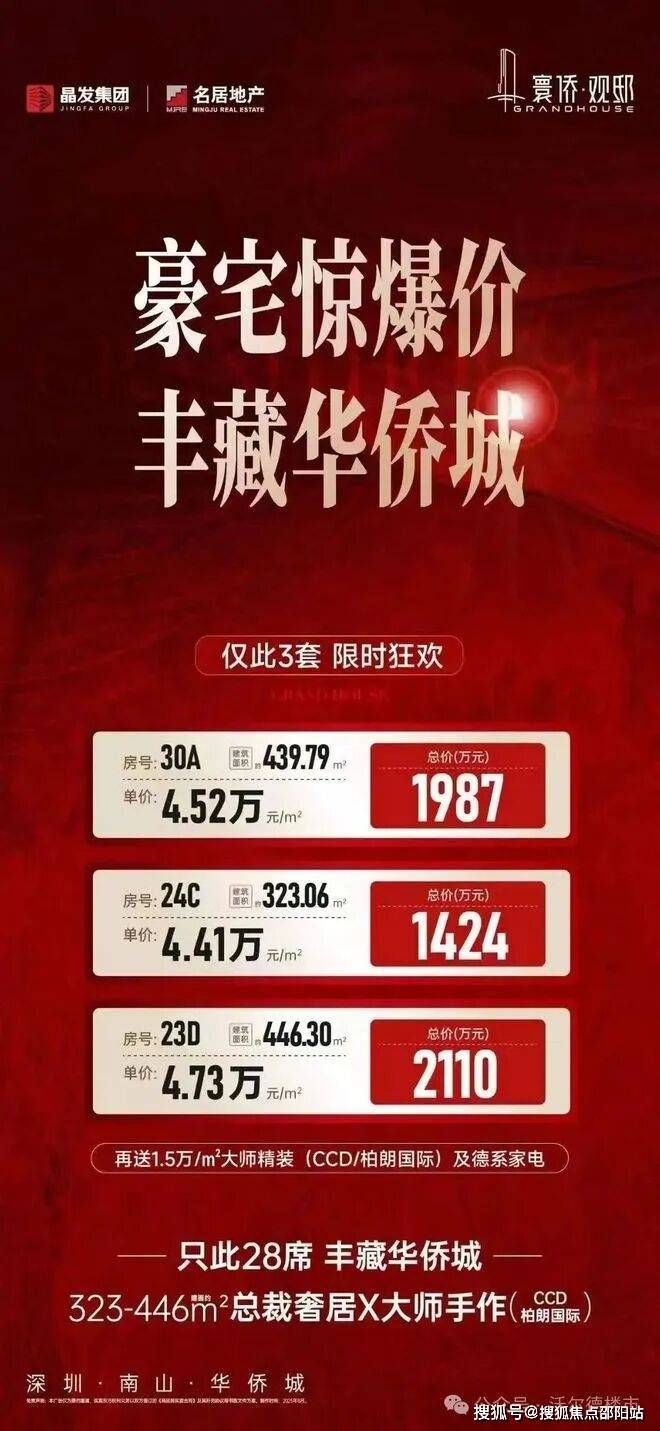在豪宅云集的华侨城,10-18万/平已是常态,但寰侨观邸偏要打破常规——320-450㎡云幕宽邸,单价仅“4字头”,还送1.5万/㎡豪华装修!居家、会所首选,现楼发售,仅28席,手慢无!