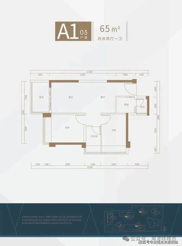 65㎡的2房1卫,其中A1-02、03户型互镜像