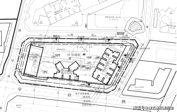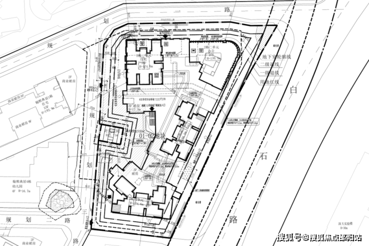 01地块:规划3栋44层、55层、55层超高层住宅(1栋一、二、三单元),以及1栋幼儿园(4栋)。