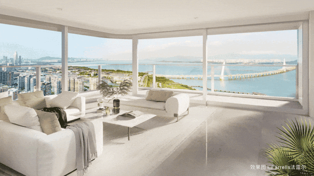 270° 景观阳台+客厅转角无柱设计+巨幕全景落地玻璃,至极“无遮挡瞰海”视野