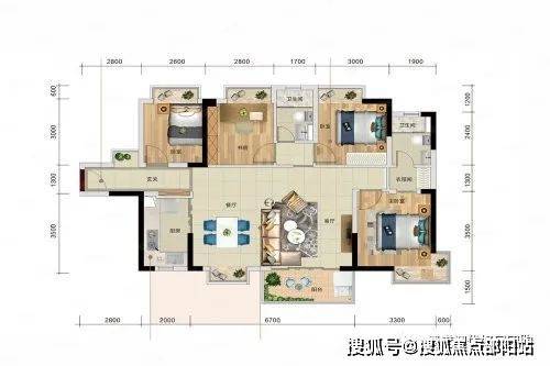 建筑面积约119㎡C户型,四房两厅两卫设计。温馨四房一步到位,三代同堂共享天伦;独立玄关,杂物陈列有序,出入更为方便,且配备飘窗,出入都有清风阳光相迎;厨房L型设计,合理烹饪动线;6.7米大尺度横厅,采光面更加开阔。