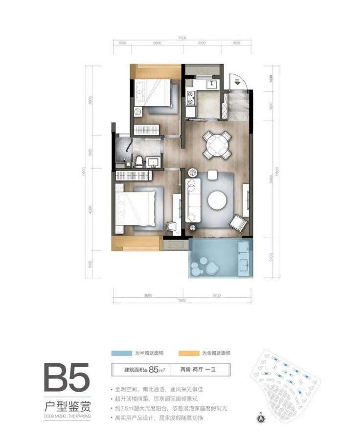 全明空间,户户朝南,通风采光俱佳约7㎡宽尺阳台,尽情享用阳光与海风 约3.7m实用开间,写意舒展生活的闲情逸趣 超宽楼间距,尽享超大园林景观 小面积灵活资产,投资度假完美兼容。