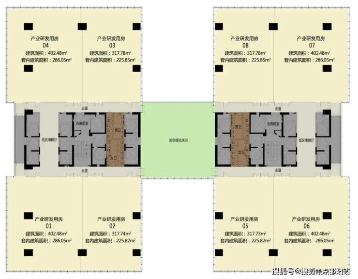 ◎标准层:约1500㎡,4个产权单元,适合企业小总部