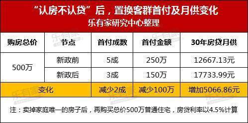 以500万为例计算,新政后换房族首付压力直接减少100万。