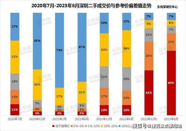 2020年“715”政策推行3年,以二手房参考价作为一个评估线来看:政策推出前,2020年7月深圳60%的房源成交价与参考价偏差值高于10%以上,高于20%以上的占比达到27%。