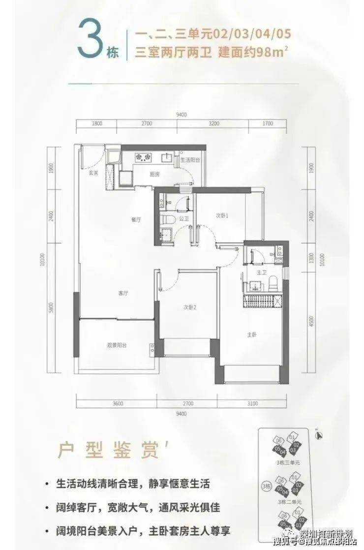 建面约98-121-143㎡3-5房产品,户型方正、宽厅阔景、动静分明。户内层高3米、采用一线高端品牌精装交付,高品质生活保障,即买即入住。