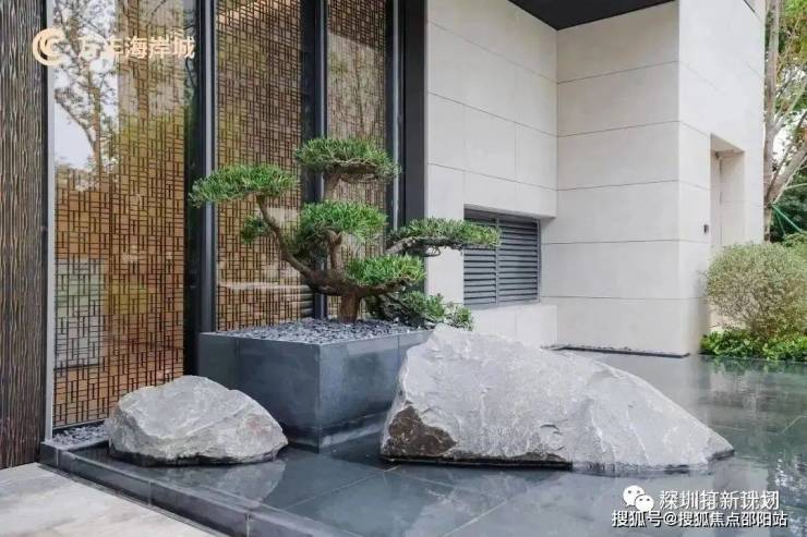 外立面主要采用为石材、大铝板与玻璃、真石漆,这种组合搭配常见于南山、福田豪宅项目使用,历久弥新。